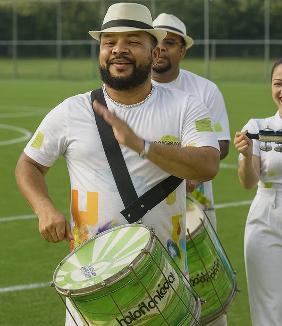 Uma experiência de Team Building brasileira, energética e imersiva que transforma os princípios do futebol e das baterias de escola de samba em uma atividade vivencial poderosa de liderança, comunicação e trabalho em equipe.