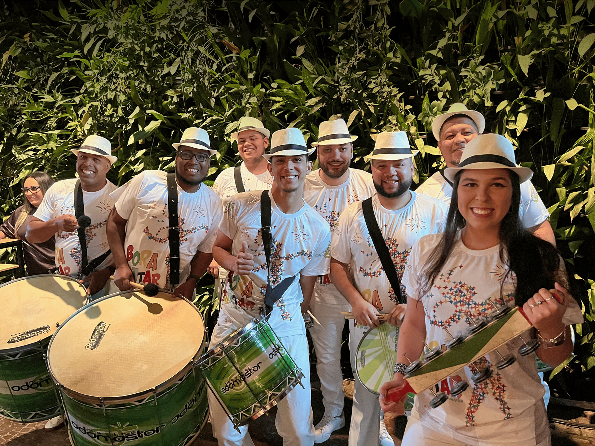 Em seguida, um dos clássicos da música brasileira, o Chorinho, abre caminho para uma animada Roda de Samba e culmina em um grandioso Show de Bateria de Escola de Samba, que traz toda a energia contagiante do carnaval.